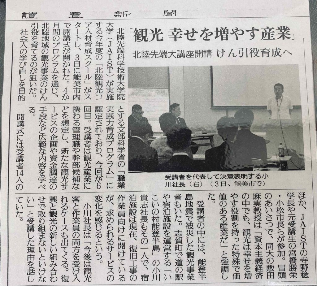 北陸先端科学技術大学院大学(JAIST) にて、北陸観光コア人材育成コースに参加させて頂き、